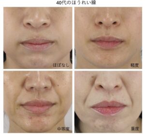 軽度のたるみの改善や予防目的としては有効ですが、すでに形成されたほうれい線の溝を浅く目立たなくする効果は見込めません。