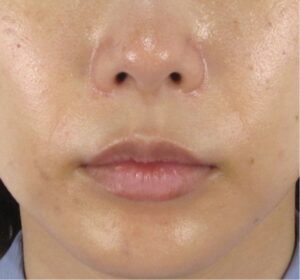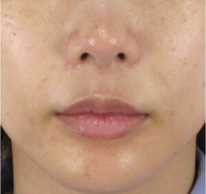 今回の方の場合、ほうれい線の溝そのものはほとんど目立たないため、真顔の状態での見た目の大きな変化は出にくいことが予想されますが、笑ったときに深く食い込むしわを浅く軽減し、将来的に折れ癖が固定化してしまうのを防ぐ目的で施術を受けられました。