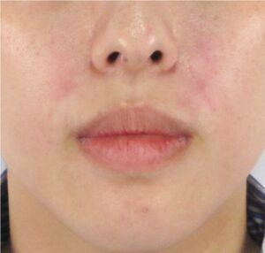注射による点状の内出血と一時的な発赤がみられますが、腫れはほとんど目立ちません。