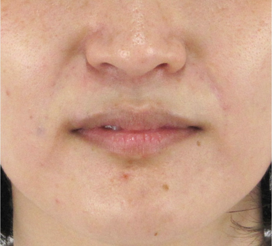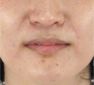 注射による点状の内出血がみられますが、腫れはほとんど目立ちません。