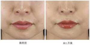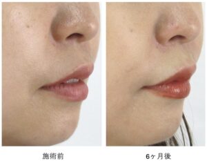 頬と口元の境目であるほうれい線のラインがほとんど消え、チークトップが上がったような印象にさえ見えます。