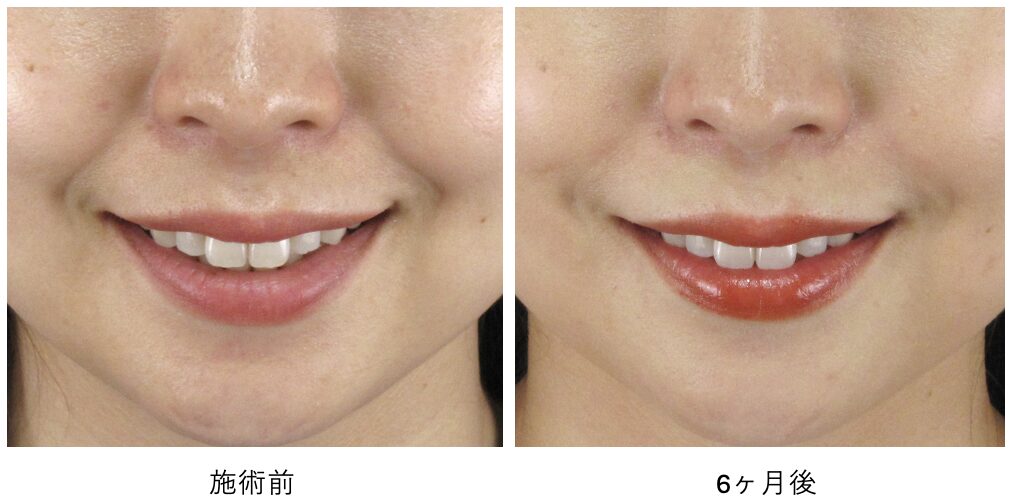 頬と口元の境目であるほうれい線のラインがほとんど消え、チークトップが上がったような印象にさえ見えます。