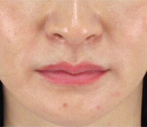 ほうれい線自体がもともとほとんど目立っていないため、真顔の状態での大きな変化は得にくいタイプですが、それでもほうれい線部分に自然なハリ感が生まれ、鼻の横の影が少し目立ちにくなっているのがわかります。