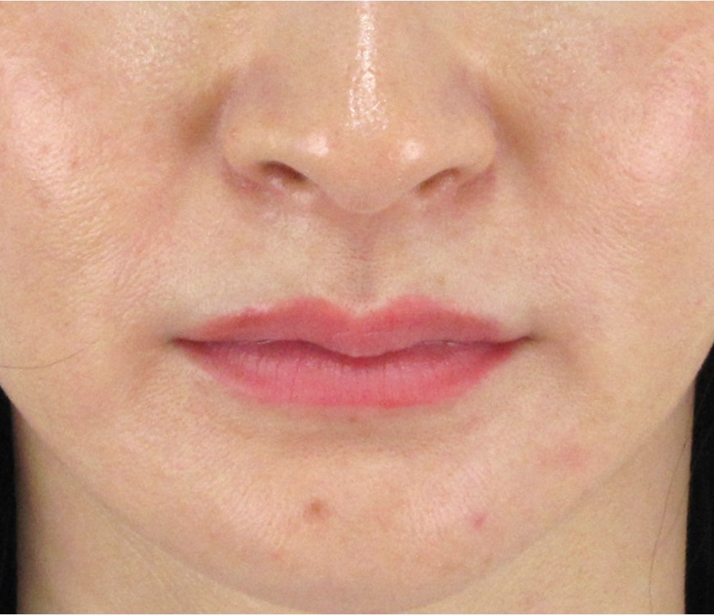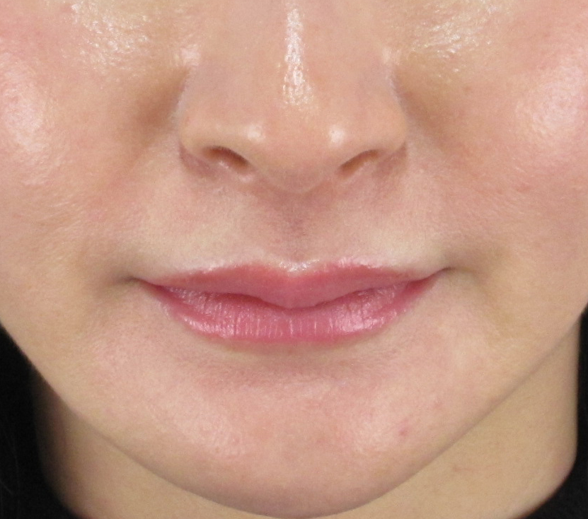 ほうれい線自体がもともとほとんど目立っていないため、真顔の状態での大きな変化は得にくいタイプですが、それでもほうれい線部分に自然なハリ感が生まれ、鼻の横の影が少し目立ちにくなっているのがわかります。