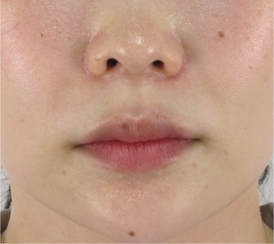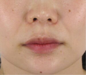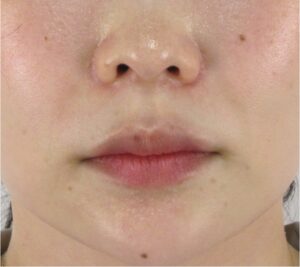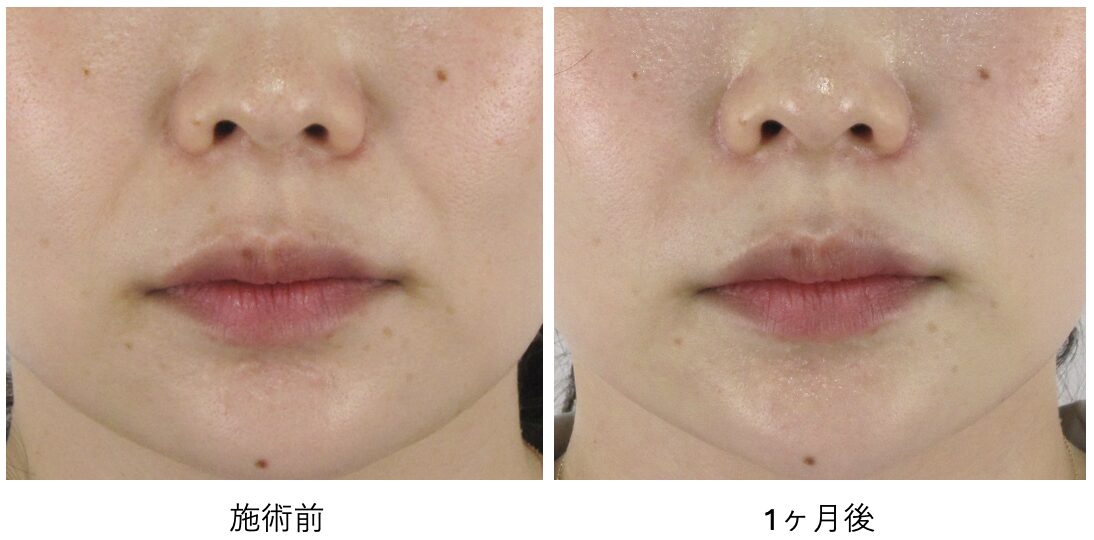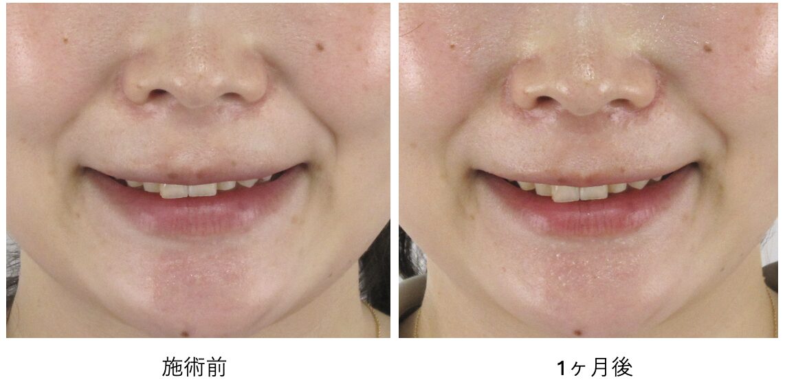 もともとの溝が浅いため、真顔の状態での起きな変化は得にくいタイプですが、それでもごく自然にほうれい線の印象が薄く改善し始めているのがわかります。