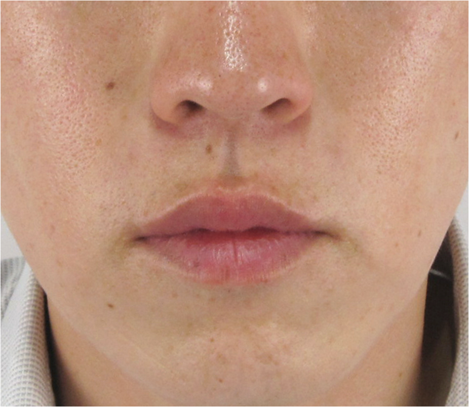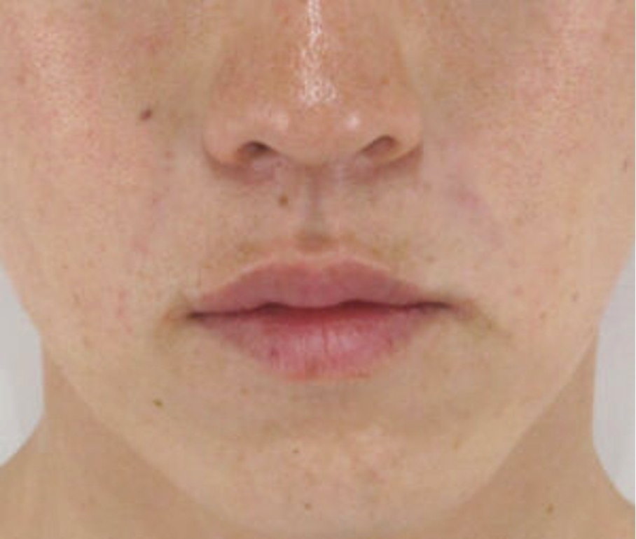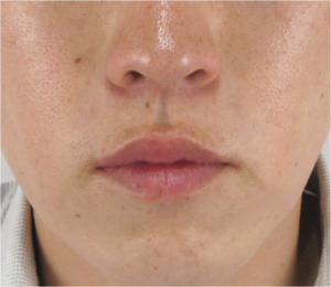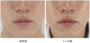 診察上、ほうれい線の明確な「溝」や「しわ」はほとんど見受けられず、ご本人が気にされているのは光の加減で鼻の横に生じる骨格上の「影」が原因と考えられます。