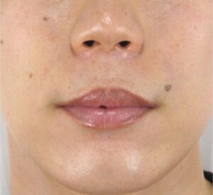 診察では、真顔の状態では構造的なほうれい線の溝はほとんど認められない状態であり、