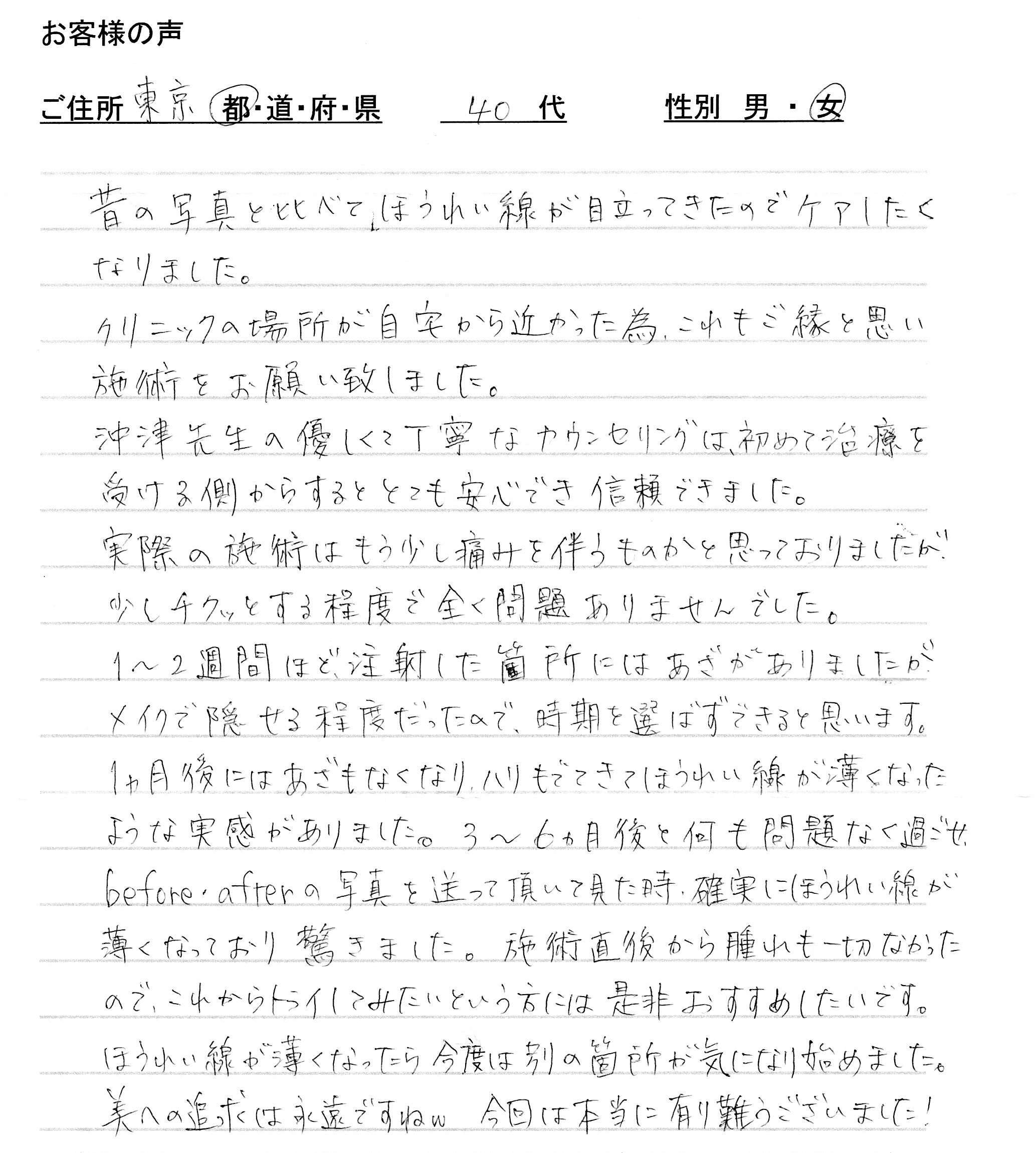 ご本人様も「もうほうれい線を気にすることが全くなくなりました。