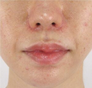 皮膚の表面にはすでに笑いじわによる「折れ癖」がつき始めており、ご本人が心配されているように、このまま放置すると将来的にこの折れ癖が深く刻まれ、治療が難しくなる可能性が高いです。