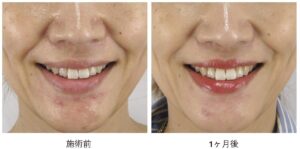 また、口角横のほうれい線の内側・外側には、皮膚のたるみが原因でみられる「膨らみ」がもとより存在しており、この膨らみに関しては施術後も変化せずそのまま残ります。