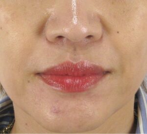 注射による点状の内出血がみられますが、腫れはほうれい線が浅く目立たなくなる程度のもので、ほとんど目立ちません。