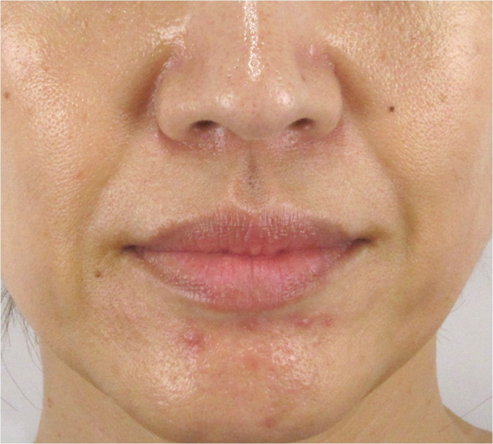 ほうれい線の溝が浅く目立ちにくくなってきているのがわかります。