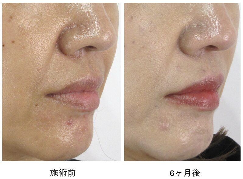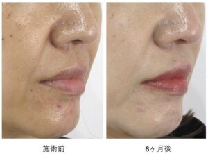 ほうれい線全体の溝が明らかに浅く目立ちにくく変化しています。
