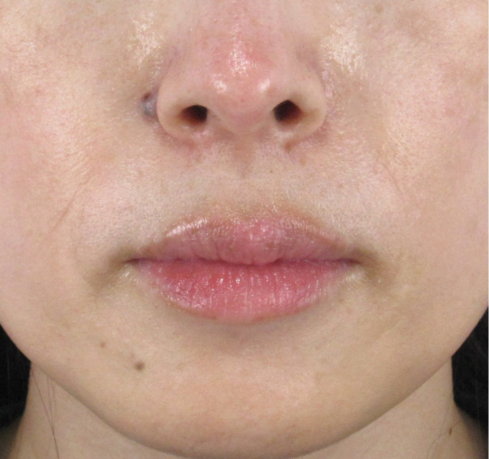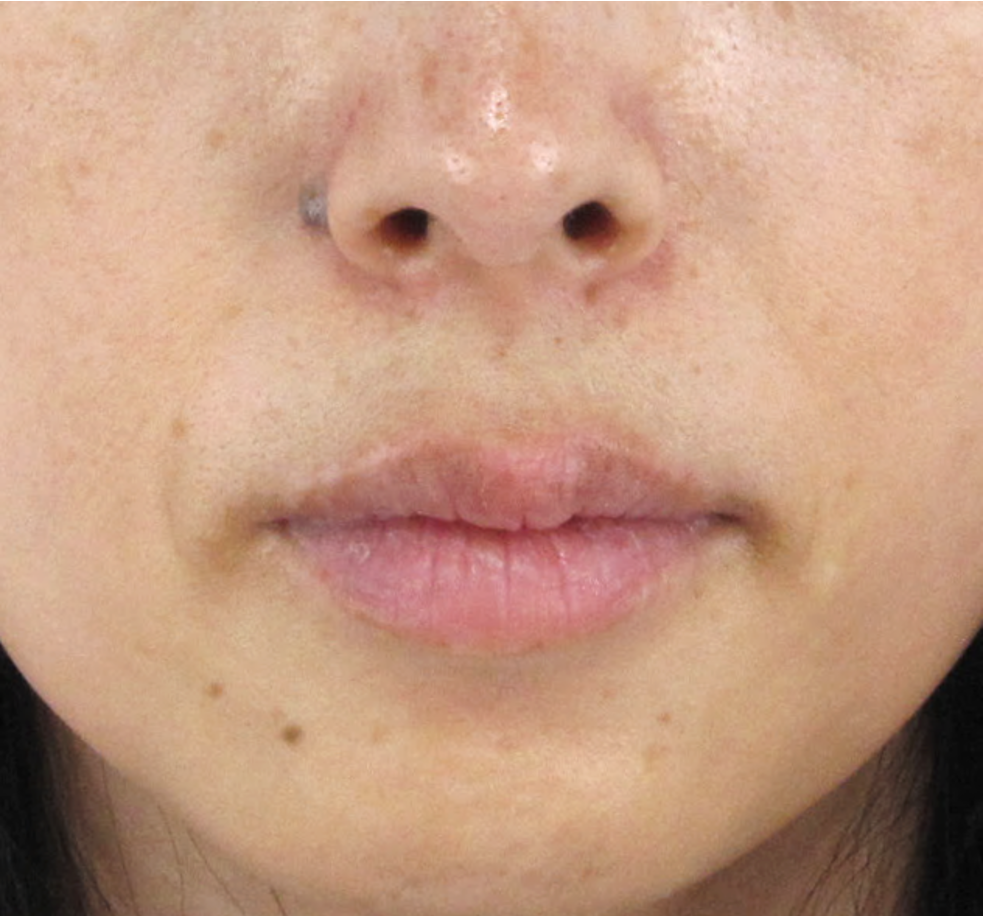 もともとほうれい線の溝が非常に浅いため、真顔の状態での変化は控えめと言えますが、ご本人様の実感としては口元にハリが生まれ、以前気になっていた口元の老け感がほとんど気にならなくなったそうです。