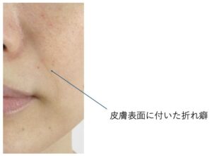 この折れ癖は、長年の表情筋のくり返し動作によって皮膚の表層が壊れ始めている状態であり、グロースファクターで一定の改善は期待できるものの、完全に消すことは難しい場合が多く、施術後も少し残る可能性があります。