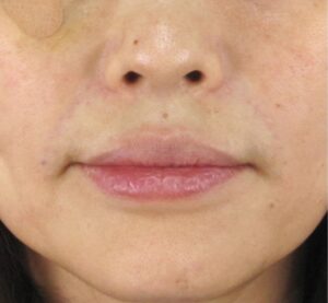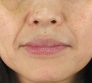 診察では、右側のほうれい線が左よりも深く、明らかな左右差がある状態を認めました。