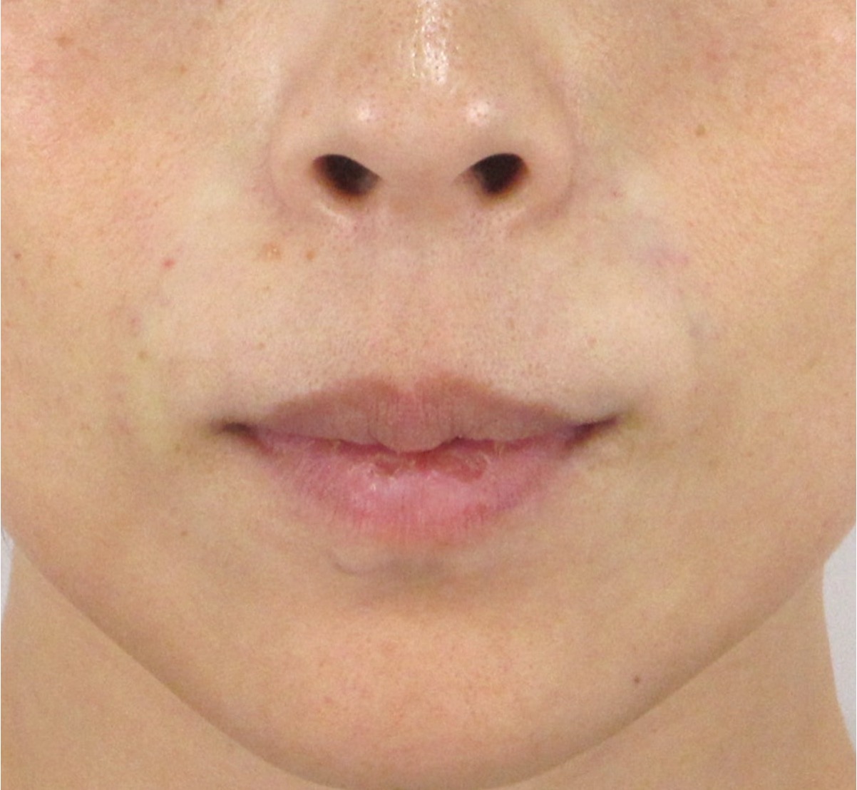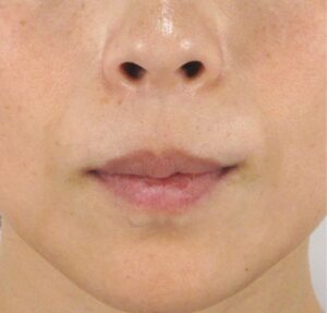 診察では、ほうれい線の構造的な溝は非常に浅く、真顔の状態ではほとんど目立たないため、