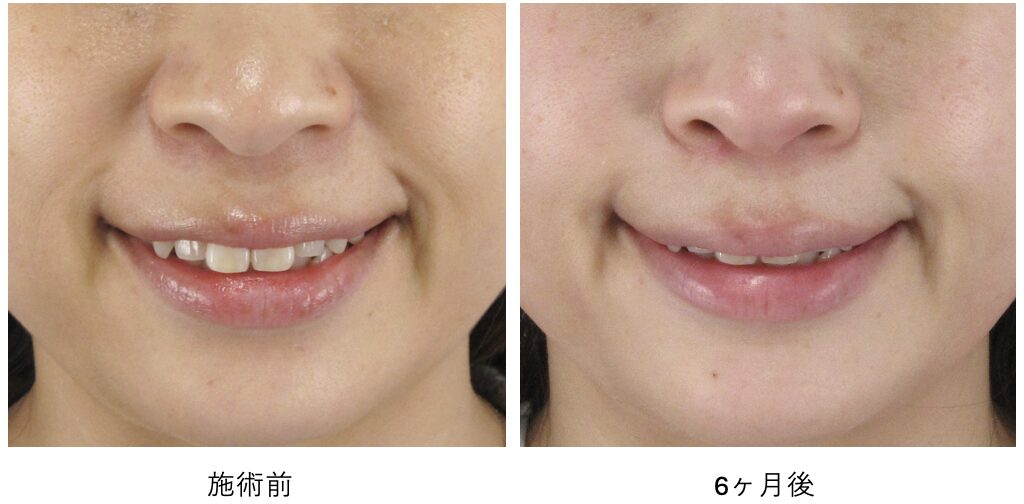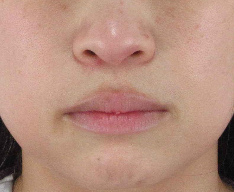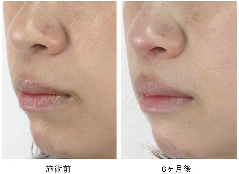 診察の結果、ほうれい線として明らかな「しわ」は認められませんでしたが、鼻の横に軽度のくぼみがあり、これが光の当たり方によってはほうれい線のような「影」として強調されて見えることがお悩みの一因となっているようでした。