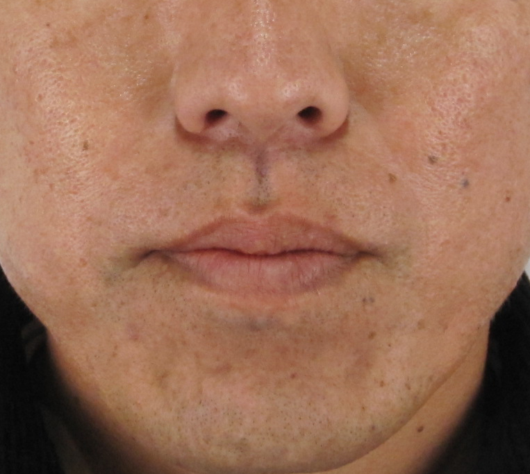 注射によるわずかな点状の内出血がみられますが、腫れはほうれい線が浅く目立たなく見える程度のものであるため、ほとんど気になりません。