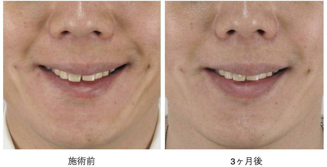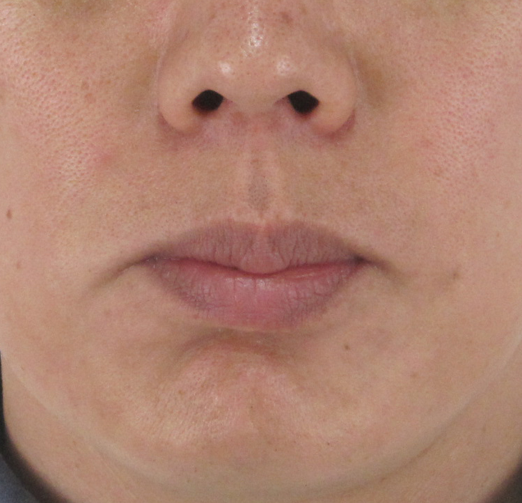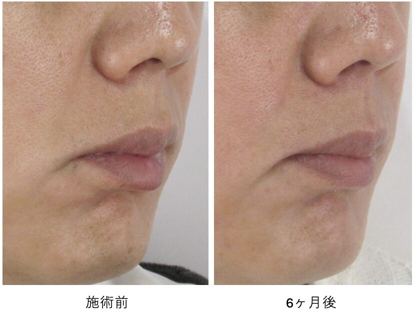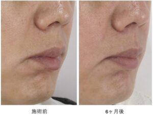 術前にうっすらと現れていた浅いラインが改善し、ほうれい線の存在感がほとんど消失しているのがわかります。