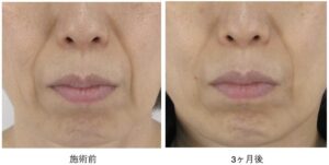 また、ほうれい線の外側には、皮膚のたるみによる「膨らみ」がもとより存在しており、この膨らみに関しては施術後も変化せずそのまま残ります。