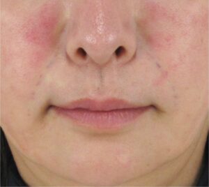 ※もともとお肌に赤みが出やすい体質とのことで、施術前より両頬に赤みが見られました。