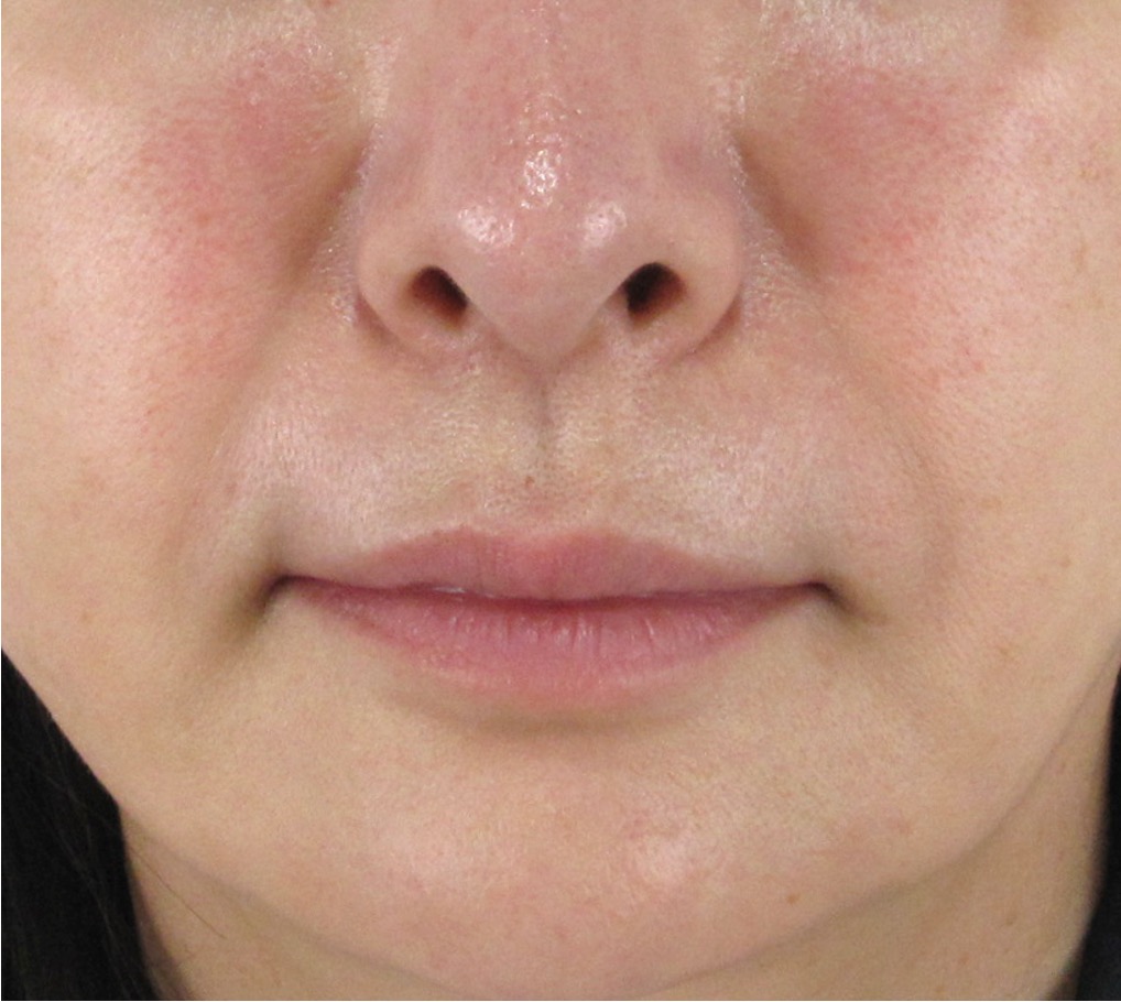 ※もともとお肌に赤みが出やすい体質とのことで、施術前より両頬に赤みが見られました。