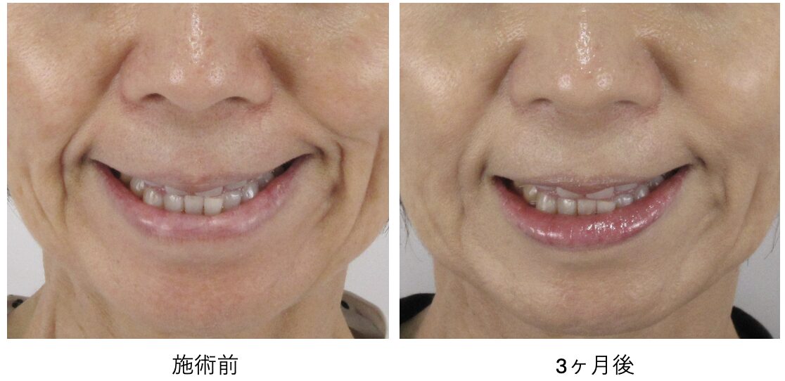 ほうれい線部分に自然なハリ感が出て、口角横のしわが目立ちにくくなっています。