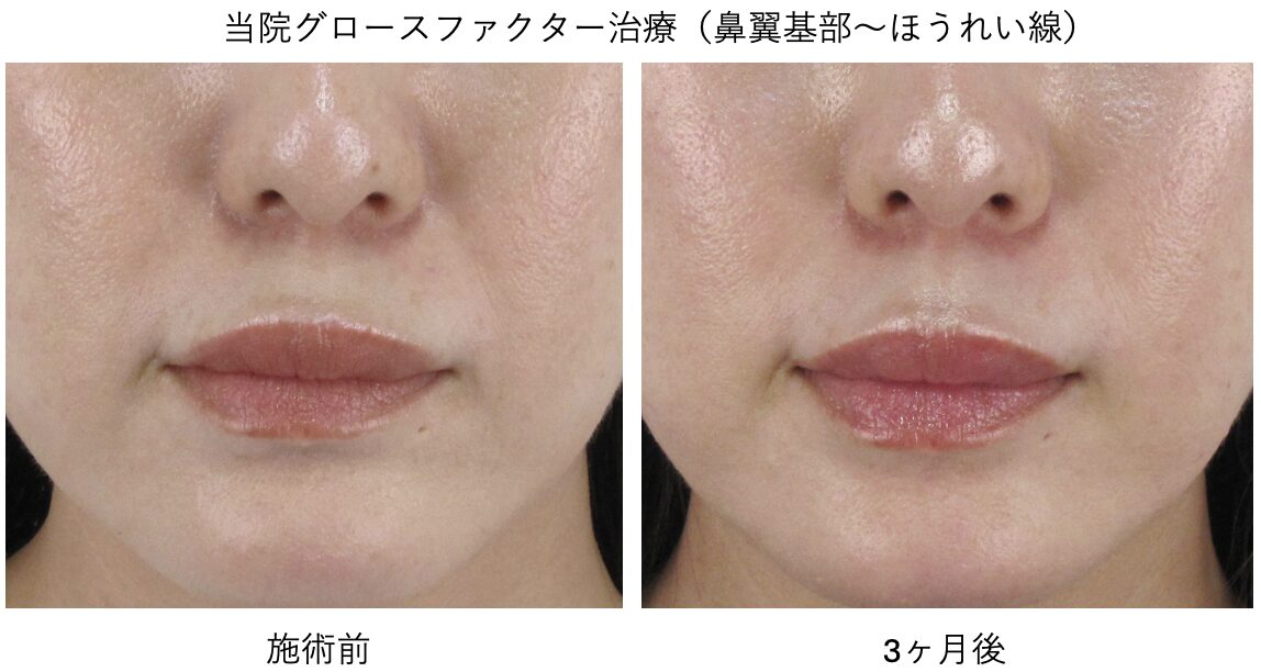 当院では、鼻の横のくぼみに対してグロースファクター治療を第一選択肢としてご提案しています。