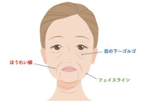 目の下〜ゴルゴライン・ほうれい線・輪郭(フェイスライン) の3パーツが重なり合い、全体の見た目年齢を決定しているのです。