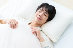 最も肌に負担をかけないのは仰向け寝。 横向き寝を続けると、片側の皮膚が圧迫されるため、左右差の原因になります。 枕は「首を支え、頬が沈まない高さ(5〜7cm前後)」を目安に選びましょう。