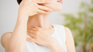 寝ている間や日中の食いしばり癖は、頬の筋肉(咬筋)を硬直させ、口角を下に引き下げることでほうれい線を悪化させる一因になります。まずは普段から「上下の歯を軽く離す」意識を持つことが大切です。