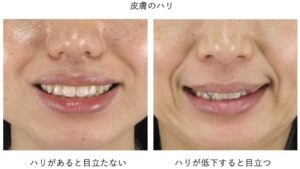 肌のハリや弾力が落ちるほど、笑ったときの折れ曲がりは深く目立ちやすくなります。