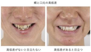 ほうれい線上部の頬(中顔面)と口元の“高低差”が少ない場合、