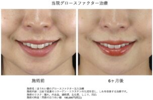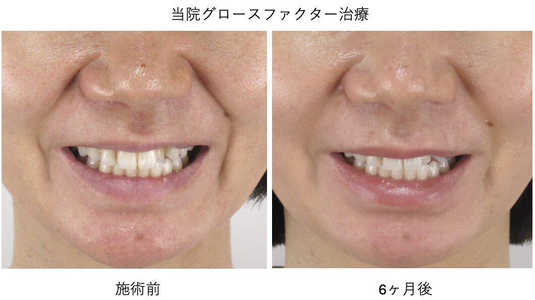 笑うときに口元を横に引きすぎる、上唇を過剰に持ち上げる癖があると、