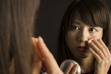 ほうれい線部分には、油分が多すぎるファンデーションは使用せず、薄く均一に塗り広げることが大切です。