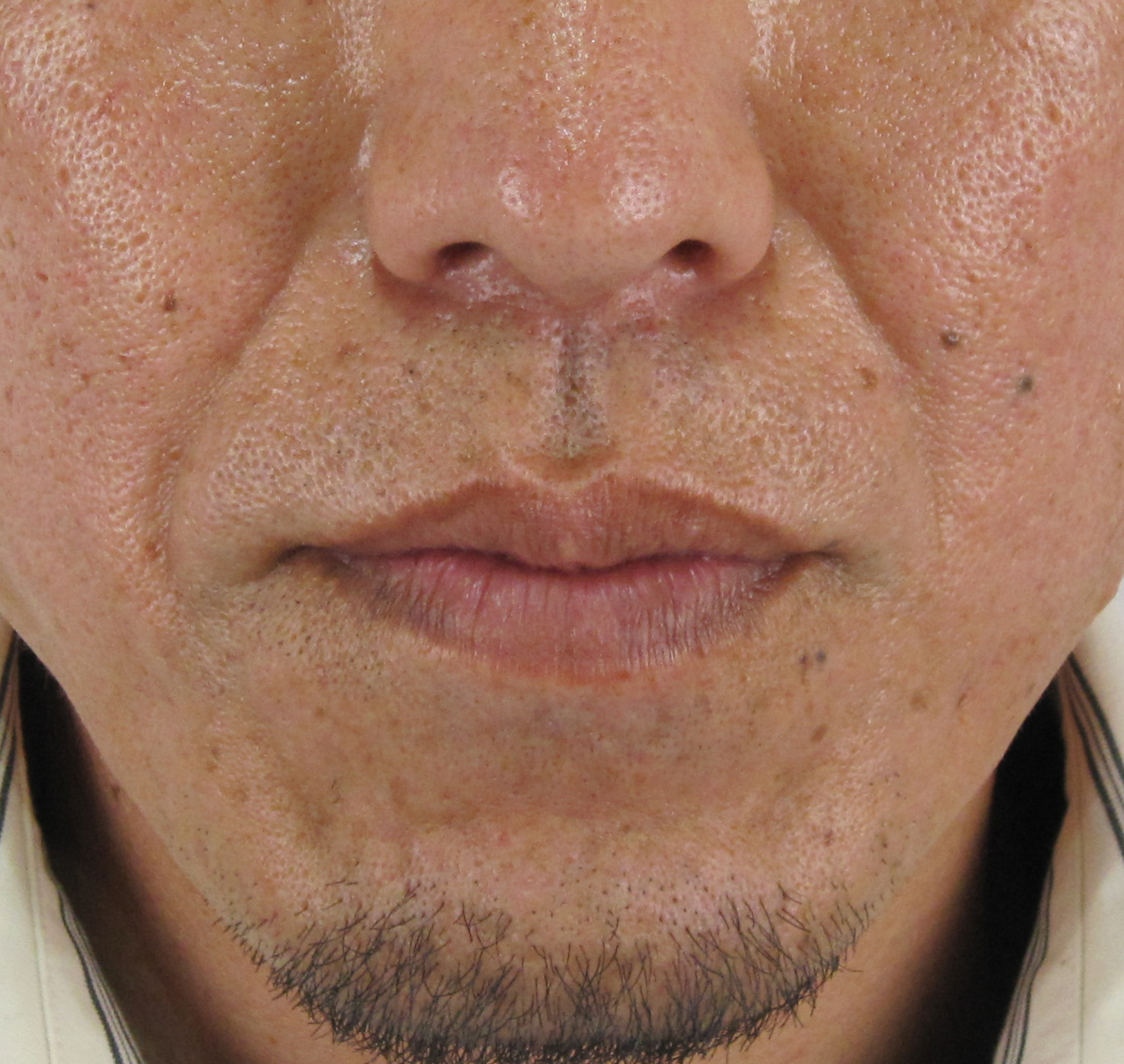たとえば、片方のほうれい線が口の横で止まっているのに対し、
